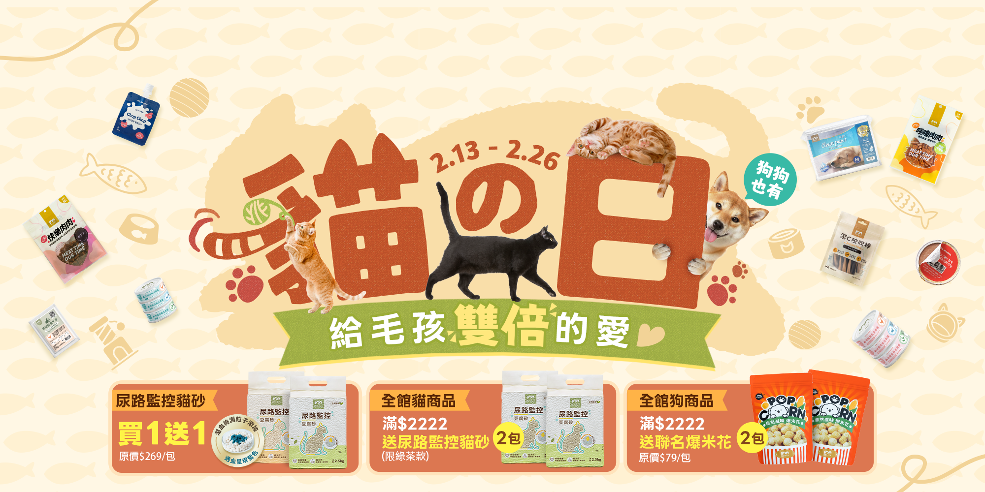 🐱 2/22 貓之日!貓砂買一送一+全館滿 $2,222 送好禮