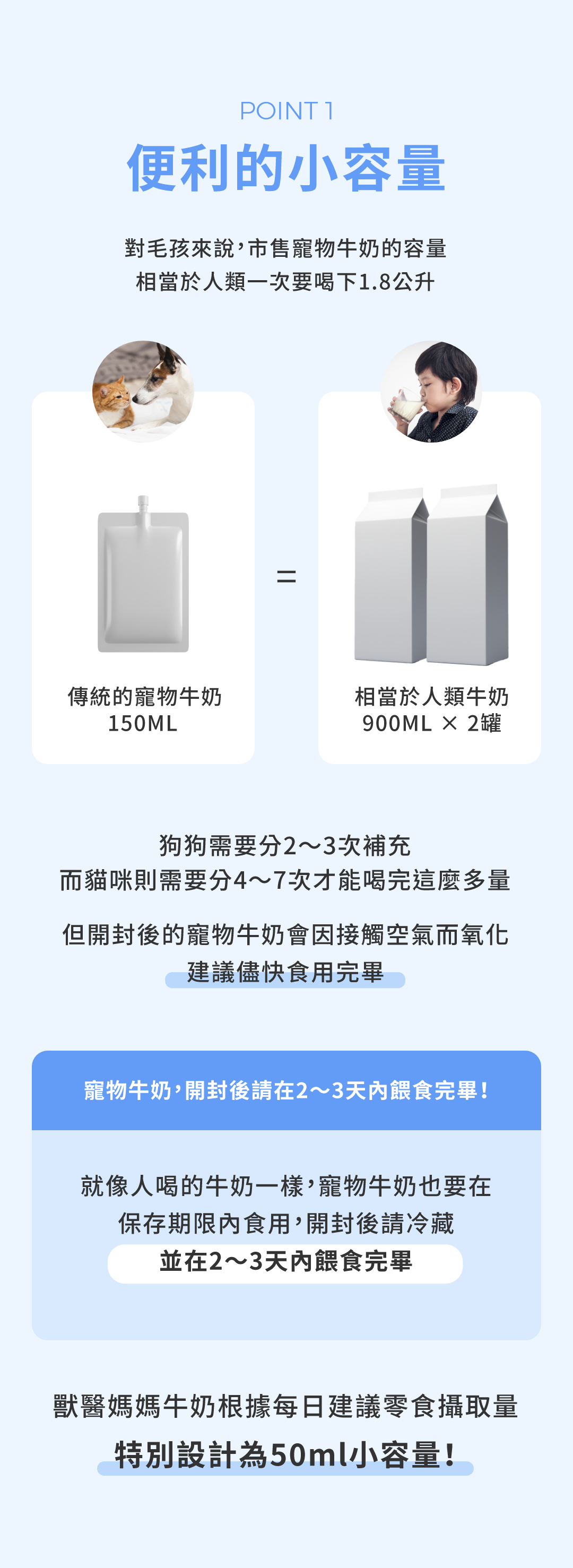 有別於市面上大包裝的牛奶、小份量更新鮮便利